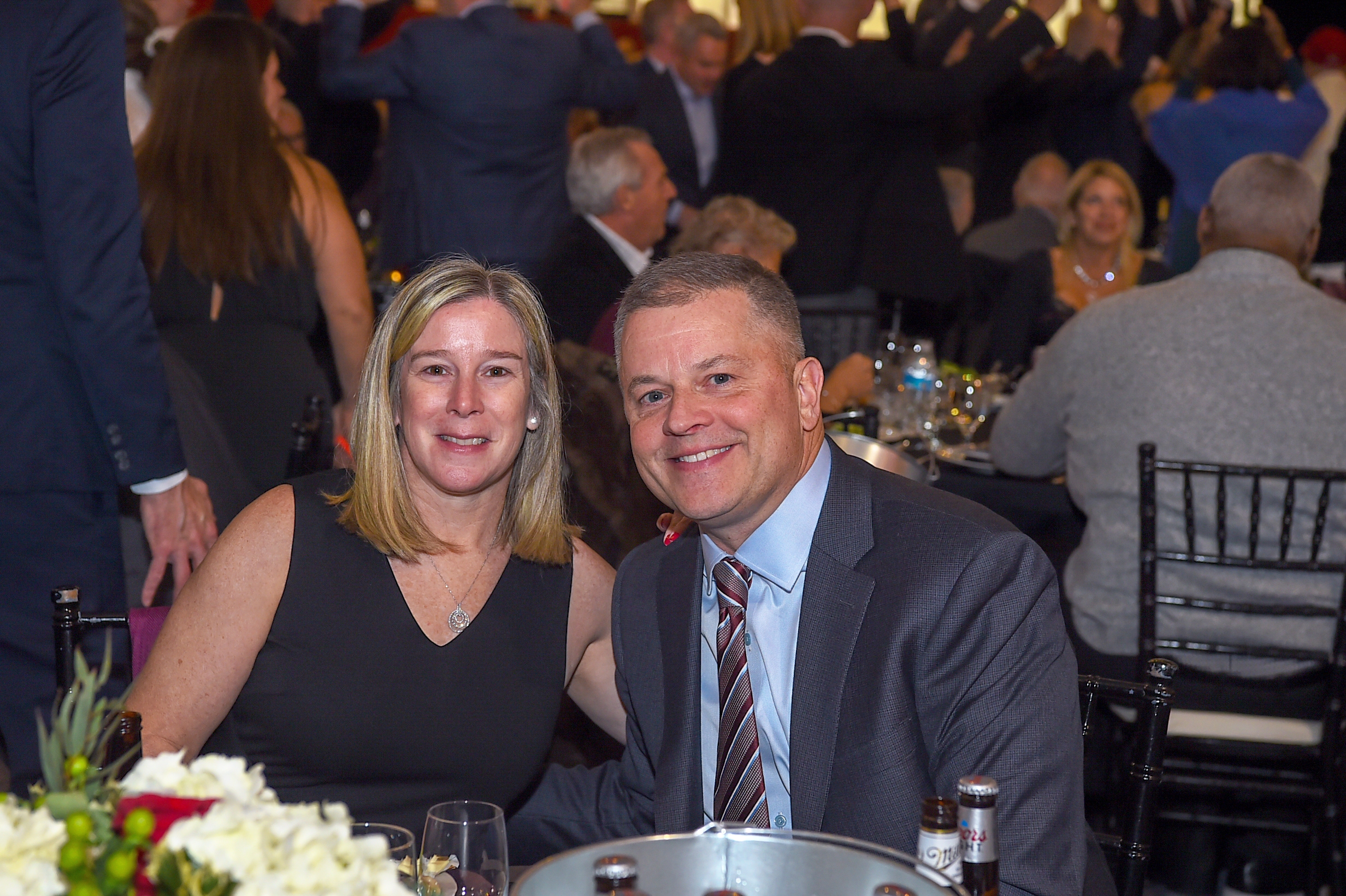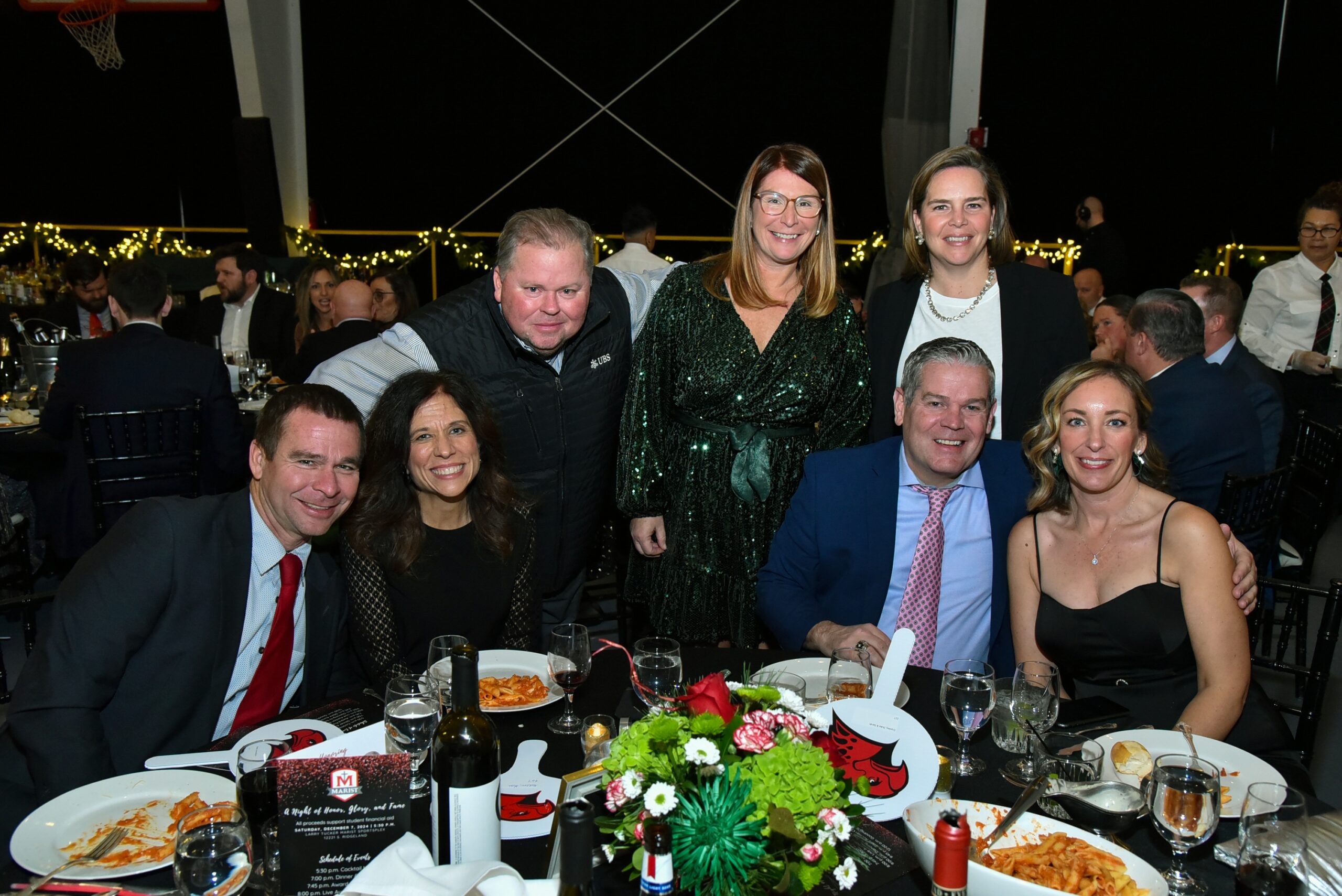 The Larry Tucker Marist SportsPlex, our 75,000 square foot athletic facility, was once again transformed into a winter wonderland, complete with twinkling string lights and festive Christmas trees. Guests were greeted with a champagne toast at the champagne wall, while a brass section from the Marist band filled the air with classic holiday carols. During the cocktail hour, attendees browsed through more than 100 silent auction items, from unique experiences to exclusive memorabilia.