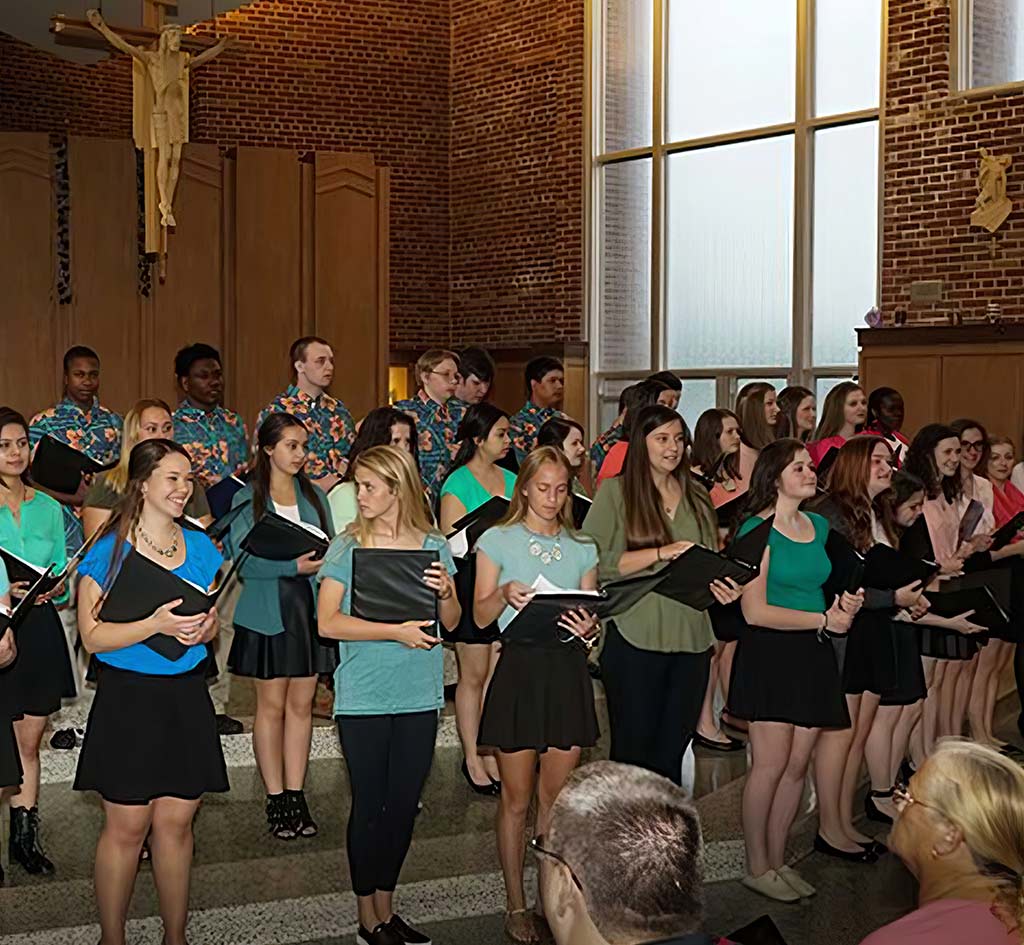 Marist chorus is offered as an academic course that is open to all students. During daily classes, students learn about musical theory and also learn a variety of songs. The group performs throughout the year at masses, concerts, and special events, beautifully performing a variety of musical styles, from liturgical and holiday pieces to standards and pop songs.
