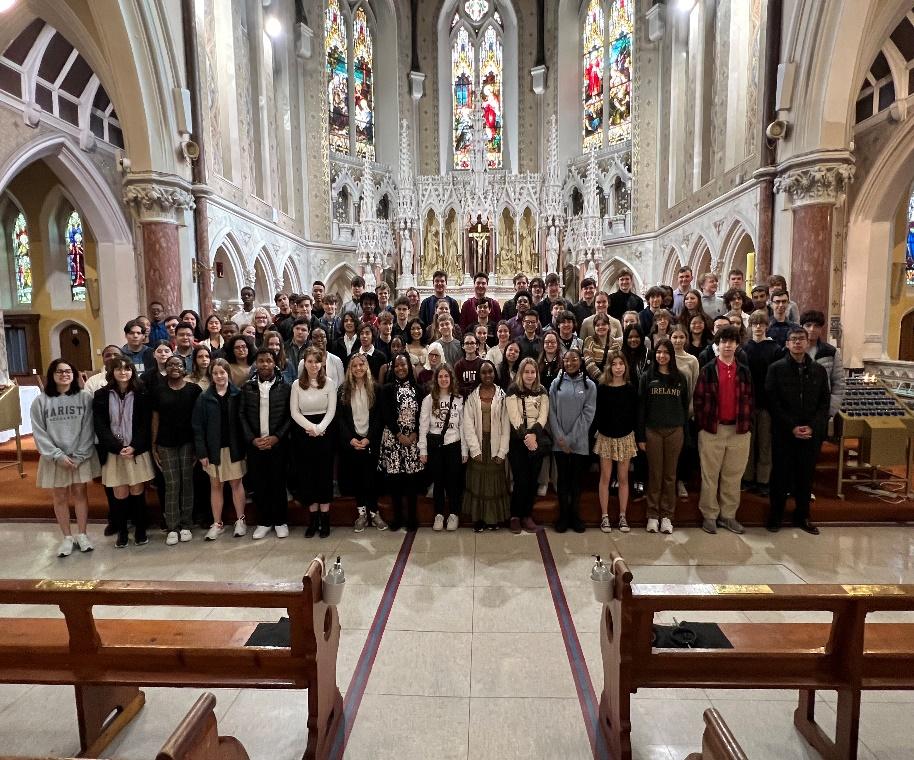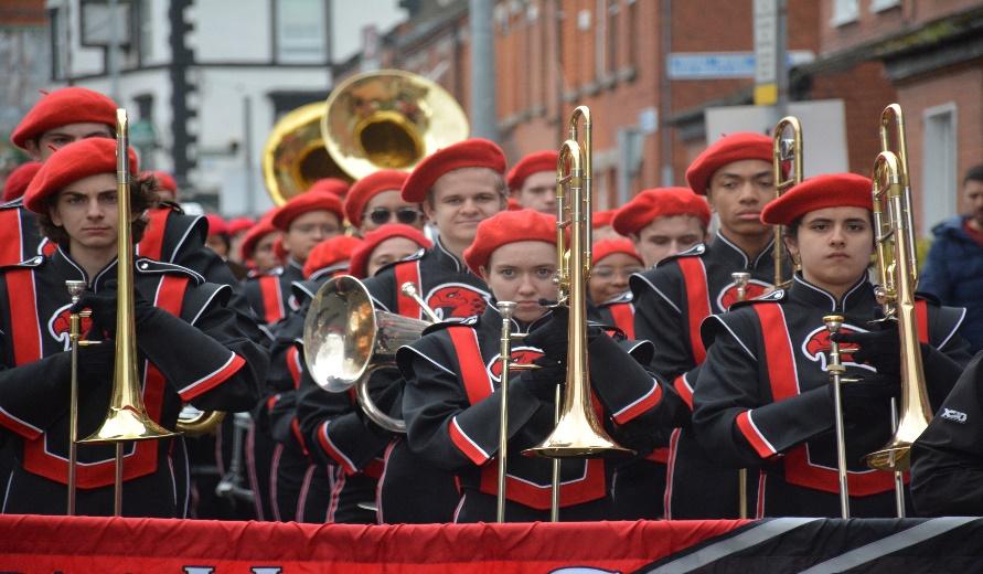 Sunday, March 12-Monday, March 13 Flight & Dublin The band students arrived at Marist by 10:00 a.m. They brought their suitcases to the band room for inspection and marching uniform loading. We then loaded the buses and headed to O’Hare airport at 12:00 p.m. When we arrived, the students received their passports from Mr. Creagh, and everyone received their boarding passes, checked bags, went through security, and arrived at our gate. Our flight was at 5:20 p.m. The students were able to use the currency exchange in the airport to get euros. The 7.5-hour flight to Dublin went very smoothly, and the students did a great job. When we arrived in Dublin, we met our tour director, Liam Finnegan. He led us to baggage claim and to our buses. Then, we headed directly to the Gaelic Athletic Association Grounds. We first had a traditional Irish breakfast. Then, the students watched a small presentation about hurling, Gaelic football, and handball. The students were broken into three groups and were able to try each sport for about 45-60 minutes or so. Each group had a coach teaching them how to play the game and ran some basic drills. At the end of each session, the group split and played against each other. It was a fantastic experience and the students seemed to really get into it. After playing the games, we had a small lunch of sandwiches and soup at the GAA grounds. Then, our truck met us and unloaded our large equipment to inspect our instruments. We were scheduled to have a rehearsal, but since the students were so tired and our luggage with the smaller instruments was packed underneath the buses, I felt it was best to not rehearse that day. We left the GAA grounds and headed to the Clayton Hotel Ballsbridge in Dublin for check-in. The students received their room keys and headed up to their rooms for a bit before dinner at the hotel. For dinner, the students had a buffet style dinner, so they were able to choose what they would like. After that, the students went up to their rooms for some brief free time before the nightly chaperone inspections. Tuesday, March 14 Belfast The students woke up at 6:30 a.m. For breakfast each morning, the students ate at the hotel. The food choices were eggs, rashers (bacon), sausage, black pudding, white pudding, beans, brown bread, cereal, yogurt, pastries, Irish tea, and coffee. At 8:30 a.m., the students loaded the coaches to head to Belfast. After the 2-hour drive to Belfast, a guide came on to each bus to give a tour of the city. We explored the various areas in Belfast, and talked a lot about The Troubles (Northern Ireland Conflict). We were actually able to get off the bus and go to the Peace Wall to write messages on the wall. We weren’t able to explore the entire wall since a movie was being filmed. The movie will be called “Kneecap.” After our bus tours finished, the students were able to explore the city in smaller groups with chaperones and eat lunch. After lunch, the students loaded the coaches and headed to the Titanic Museum. The students were able to walk through the Titanic Museum at their leisure. Once we left the museum, we headed back to the hotel for our dinner buffet. Then, the students were in their rooms for chaperone inspections by about 9:30 p.m. Wednesday, March 15 Galway City & Cliffs of Moher The students woke up at 5:30 a.m. and headed down for breakfast. After breakfast, we headed to Galway City. When we first arrived, we all headed to Galway Cathedral for a quick self-guided tour. After that, the students were able to explore the area in small groups with chaperones and eat lunch. The students were also able to do some shopping while we were in Galway as well. After Galway City, we drove to the Cliffs of Moher. It was a bit of a rough drive because the mountains and the tight roads with buses, but we made it in one piece. The weather was very rainy and foggy, so we couldn’t see too much, but we all made the best of it. After the Cliffs, we headed to Limerick for dinner. The students were able to choose beef, chicken, or a vegetarian option. Once we finished dinner, we headed back to our hotel in Dublin for immediate chaperone inspection and lights out. Thursday, March 16 Dublin The students woke up at 7:00 a.m. and came down for their traditional Irish breakfast. After breakfast, we got on the buses and had a local step-on guide give us a tour of the city. Then, we headed for our tour of Christ Church Cathedral. The Church was built in 1152 and it was absolutely stunning. We explored the Church and the catacombs for about 45 minutes or so. After Christ Church Cathedral, we headed to the EPIC Irish Emigration Museum. The students went through a self-guided tour through the museum. Then, the students went into small groups with chaperones, had lunch, explored the city, and shopped for the next few hours. Patrick Keelan (assistant director) and myself went to a band director parade meeting at The Mansion House with the Lord Mayor. Special Mention-Patrick Duffy (Dallas, Step-by-Step) was the Dublin Parade Marshall and was the guest speaker at the meeting. After the students shopped and explored, they headed back to the hotel and ate their buffet dinner. Then, the students went to their rooms and had chaperone inspections around 9:00 p.m. Mr. Keelan and I returned back to the hotel around 11:15 or so. Friday, March 17 Dublin (Parade) On Friday, the students woke up around 7:15 a.m. They dressed in their full marching uniforms and came down for breakfast. The students wore berets for the parade since they are much easier to transport instead of shakos. After breakfast, we collected all of the instruments out of our storage room and loaded the buses. We lined up for the parade and were in the holding area for a few hours. There were 14 bands in total. 13 were from the U.S. and 1 was from Canada. We were the 7th band in the parade. We then marched through the 2-mile parade. There were tens of thousands of people lining the s