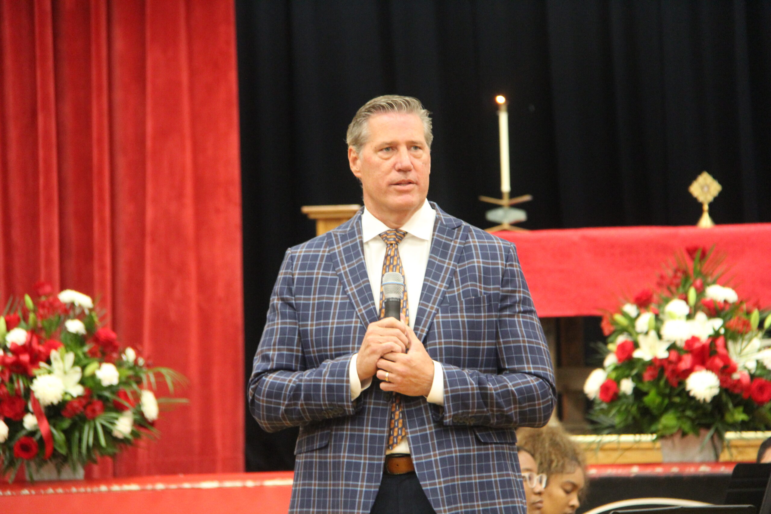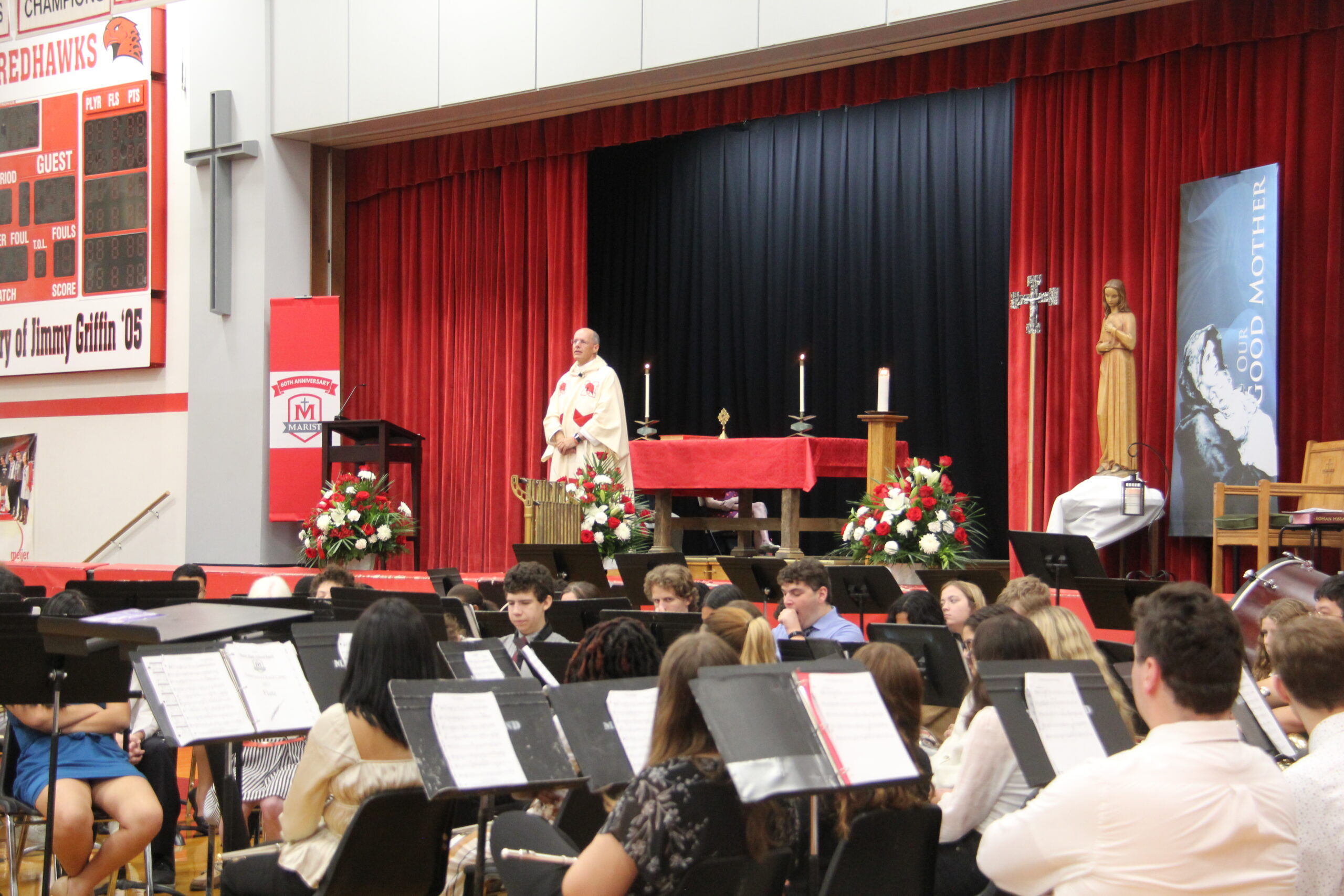 On Sept. 17, the Marist Main Gym transformed into a place of worship filled with current and former Marist staff, parents, alumni, current and former students, and friends from the community to celebrate 60 years of Marist High School. Fr. Tom Hurley ’85 was the presider.