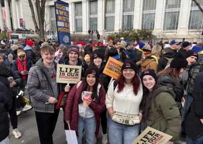“The Amor Vitae Pilgrimage this year was truly an amazing experience. This was my second time attending, and it continues to be such a meaningful and impactful trip. There is so much to see, learn, and appreciate in Washington, D.C. I really enjoyed participating in the March for Life. It was wonderful to see so many people come together with one shared mission which was to celebrate life. I also loved meeting new people from other schools across the country. I am so grateful that Amor Vitae is able to offer this pilgrimage each year. Being a part of Amor Vitae for the past four years has been such a blessing. I love all the fundraising and service we do to support and give back to the community each year.” -Claire Vitellaro ’26